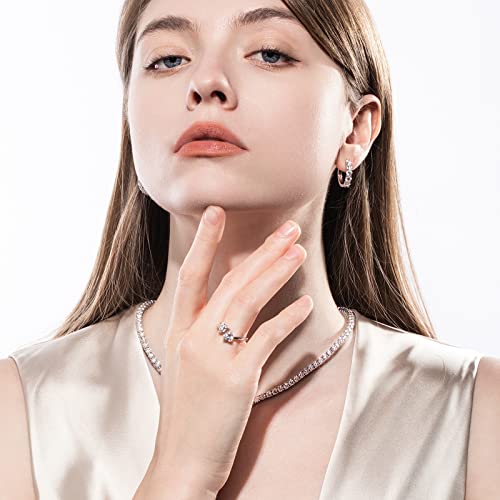 AnuClub Adjustable Moissanite Heart Statement Rings 2cttw D Color 925 Sterling Silver Unique Eternity Wedding Promise Anniversary Band Ring for Women 5