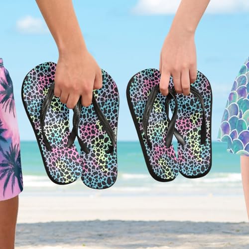 ALAZA Colorful Leopard Print Flip Flops for Women Fashion Beach Slippers Comfort Mens Flip Flops Non-Slip Rubber Shower Slippers Sandal for Hotel Travel Sport,XS 6