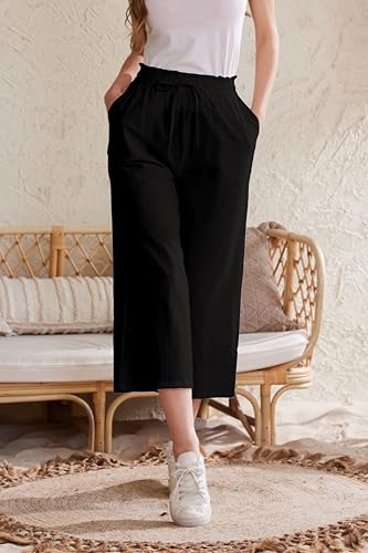 LNX Womens Linen Capri Pants Wide Leg High Waisted Drawstring Casual Cropped Pants with Pockets 1