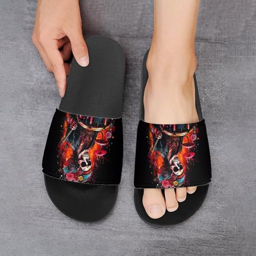 Rocker Drumming Sugar Skull Drummer House Sandals Non-Slip Bathroom Slippers Beach Summer Shoes for Men Women 7