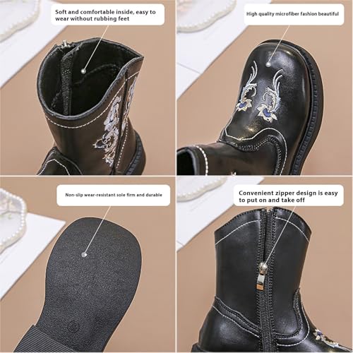 IWIHMIV Kids Cowboy Boots Girls Western Mid Calf Boots with Embroidered and Zipper Comfortable Soft Sole Riding Shoes 4