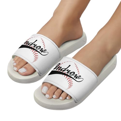 Custom Sports Slides Personalized Slippers - Baseball Sandals Quick Drying Softball Slippers Indoor Outdoor,Gifts for Men Youth Boy (White,Style 16) 7
