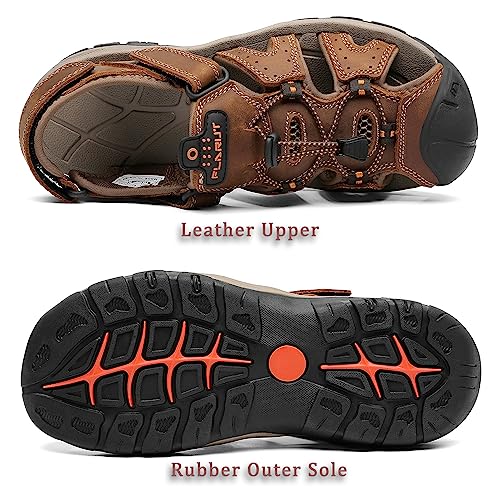 FLARUT Men's Sport Sandals Outdoor Hiking Sandals Closed Toe Leather Athletic Lightweight Trail Walking Casual Sandals Water Shoes 5