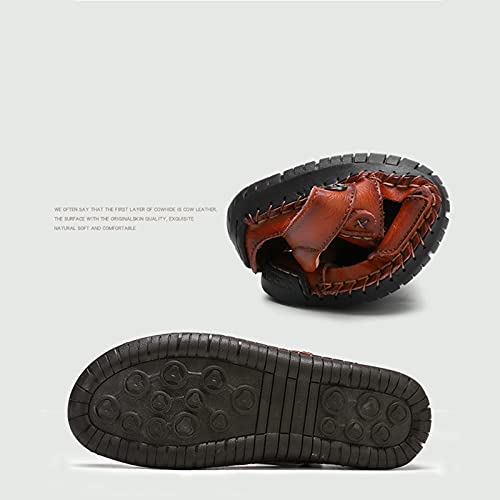 Wygwlg Summer Men's Sandals Breathable Beach Sandals, Genuine Leather Soft Breathable Shoes, Yellow brown-48 6