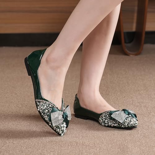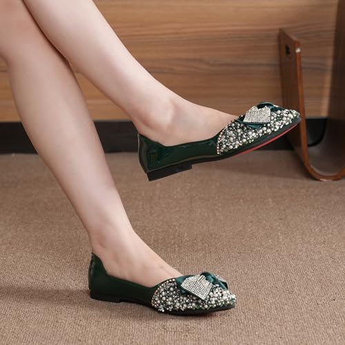 • 【rhinestone shoes for women】:Classic style cute dress flats for woman,Women flats classic and versatile design for daily wear and superior fit,ballet flat shoes shape is neat and clean,It features soft, light and flexible.