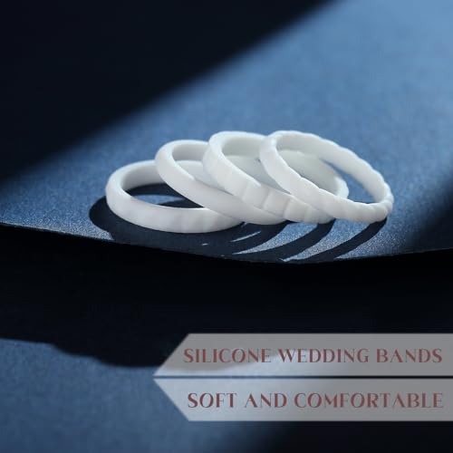 HOT ! Stackable Silicone Wedding Bands for Her - Comfortable Braided Thin Rubber Promise Rings - 4 Rings