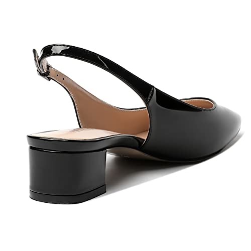 MERRORI Women's Patent Buckle Block Solid Slingback Square Toe Chunky Low Heel Pumps Shoes 1.5 Inch 1