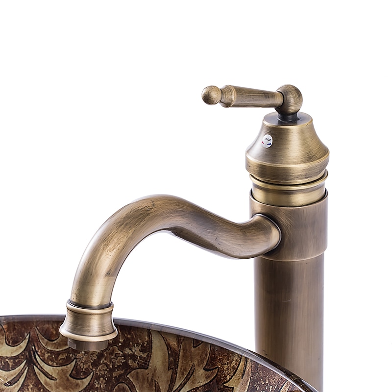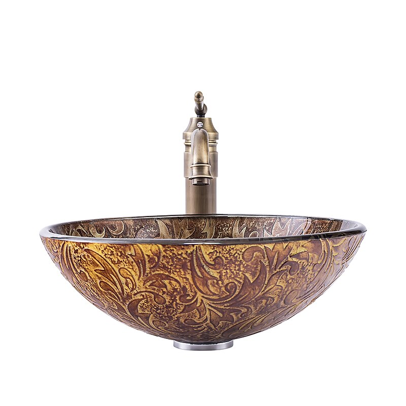Highlights Outstanding Value : Slick touch texture Gives Comfortable Sensation; Artificial hand-painted Pattern let the beauty of your new bathroom vanity shine through, Glossy surface is easy to clean up. Tempered Glass Material : Tempered glass sink with solid brass faucet for durability and reliability. The ship form is classical, aesthetic, and easy to clean up. Sink Dimension : 16.5" Length x 16.5' Width x 5.7" Height. Appropriate size design so you don't have to worry about water splashing, designed for above counter, Installation with standard US plumbing connections. Easy to Install : The faucet with complete accessories complements the basin, drill a suitable hole on the countertop for draining to install. Package included : Vessel Sink + faucet + Pop-up Drain and Mounting Ring all included,if you had install problem can contact us. Note: Dear buyer, if the parcel is found to be badly damaged, please take a photo, reject it and contact us for resolution. Because of the size measurements are handmade, so there may be 1-3CM error. Please understand because of the light irradiation or computer display difference, so I can't guarantee photos and real color is 100% the same.
