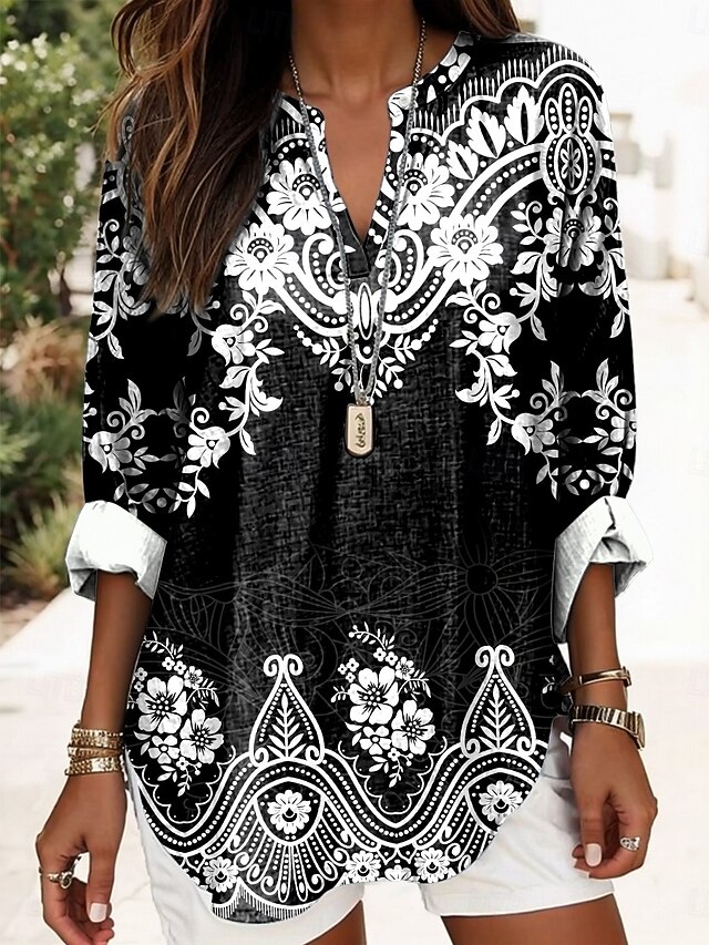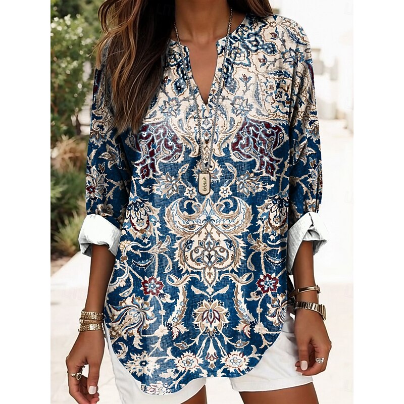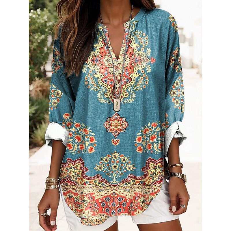 More information about Women's Blouse Tunic V Neck Long Sleeve Boho Casual Graphic Geometric Elegant Daily Regular Tops Daily Print Black Yellow Red Blue Gold
