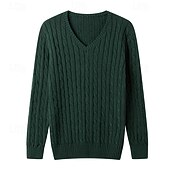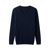 More information about Men's Pullover Sweater Jumper Cropped Sweater Knit Sweater Ribbed Cable Knit Knit Regular Knitted Plain V Neck Fashion Casual Daily Wear Date Clothing Apparel Fall & Winter Dark Navy Dark Green M L