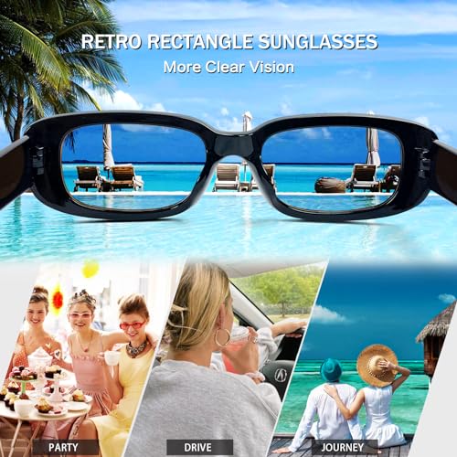 • OUTSTANDING DESIGN - The 90s unique rectangle sunglasses are both trendy and retro chic, suitable for most face shapes and keep up with fashion trends. Cute classic look for women or men, and the fun rectangle sunglasses make your stand out from the crowd, lots of compliments