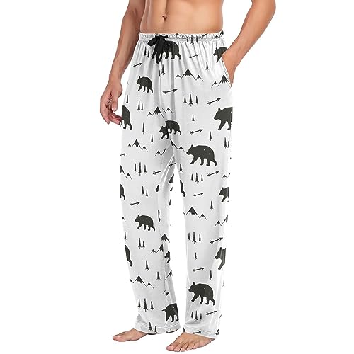 Black White Bear Mountain Pajama Pants Graffiti Arrow Tree Lounge Sleepwear PJs Men's Pajama Bottoms Sleep Pants M 1