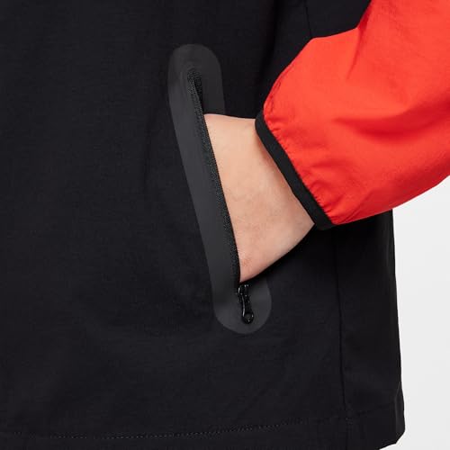HOT ! Nike Tech Big Kids' (Boys') Woven Jacket (HQ8911-011, Black/Light Crimson/Black)