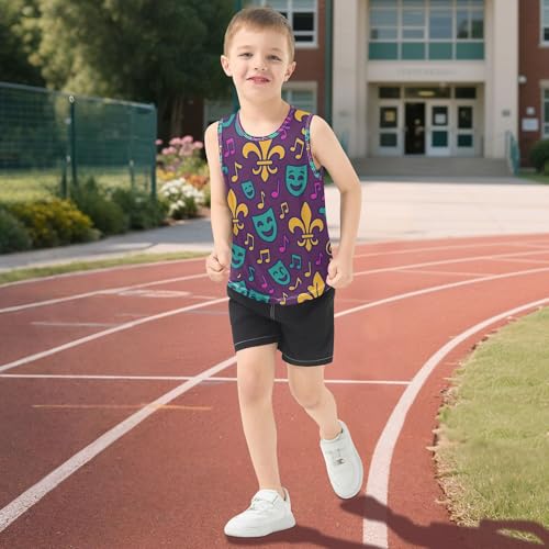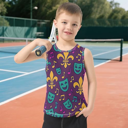 JUNZAN Mardi Gras Balloon Crown Purple Boys Tank Top Sleeveless Kid Vest Athletic Workout Clothes for Running Sports Beach 3T 5