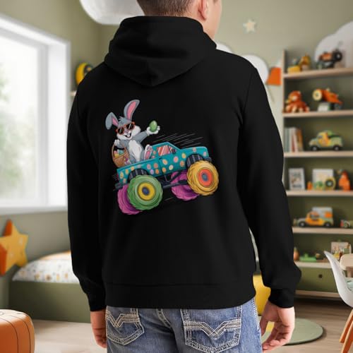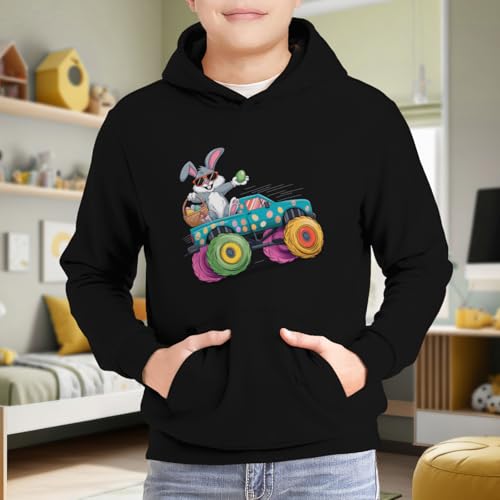 Kids Rabbit Eggs Happy Easter Monster Truck Boys Girls Lightweight Kangaroo Pocket Hoodies 6