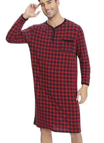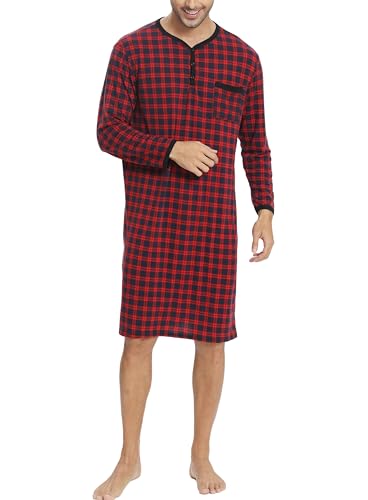 HOT ! Men's Plaid Long Sleeve Nightshirt Knee-Length Sleepwear with Chest Pocket Sleepwear