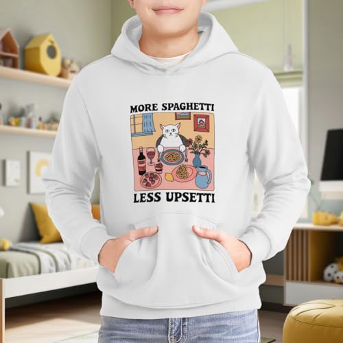 Kids Funny Cat More Spaghetti Less Upsetti Boys Girls Lightweight Kangaroo Pocket Fleece Hoodies 6