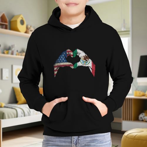 HOT ! Kids Mexico America Flag Vintage Mexican Roots American Boys Girls Lightweight Kangaroo Pocket Fleece Hoodies