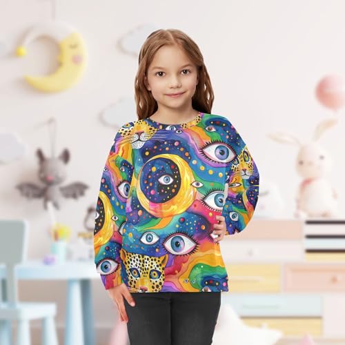 JUNZAN Weird Leopard Evil Eyes Ball on Rainbow Little Boys Sweatshirt Hoodie Long Sleeve Hoodie for Boys Athletic 4T 6