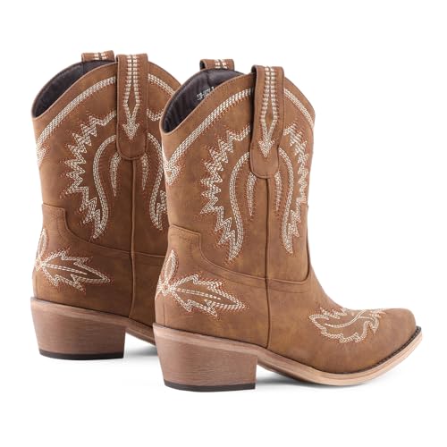 LingxiaUne Women’s Western Cowboy Boots – Embroidered Mid Heel Ankle Boots for Stylish & Versatile Wear 5