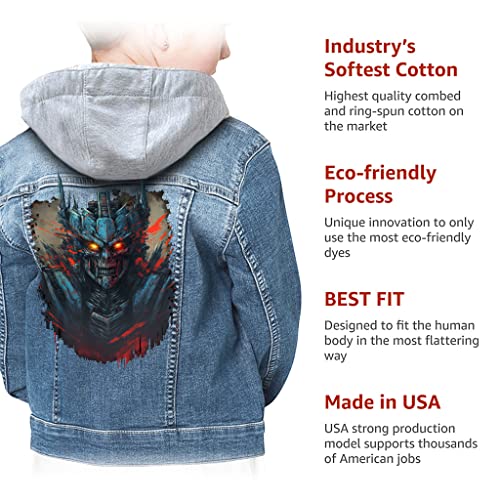 HOT ! Cool Robot Hooded Denim Jacket for Kids - Fantasy Art Jean Jacket - Themed Denim Jacket for Kids