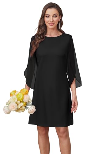 • 【Design】Timeless design that never goes out of style, elegant split flare sleeve. The 3/4 flutter sleeves and elegant draping create a feminine, universally flattering silhouette