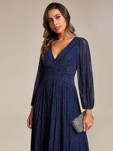 Ever-Pretty Women's A-Line Long Lantern Sleeves Formal Gowns Empire Waist Long Glitter Evening Dress 6