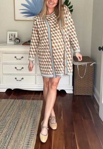 • Unique Plaid Dress: This mini sweater dress features a unique mid-century modern geometric pattern with contrast borders - perfect for adding vintage flair to your wardrobe. Old money outfits, business casual dress, perfect brunch outfits