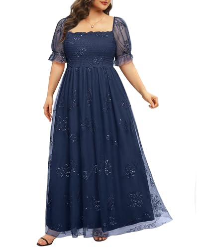 • 【Features】Unleash your radiant elegance with our exquisite dress. It features a sophisticated square neckline, sequin floral embroidery, and puff sleeves, all complemented by a smocked bodice. The smocked waist paired with an A-line silhouette accentuates your feminine curves while subtly concealing your midsection. The empire waist design elongates your legs, enhancing your overall look. The unique floral embroidery on sheer mesh adds a chic and flattering touch, guaranteed to turn heads.