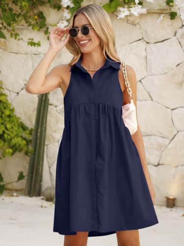 DEEP SELF Women Summer Collared Shirt Dress Casual Loose Button Down Short Dress V Neck Tunic Mini Dress with Pockets 2