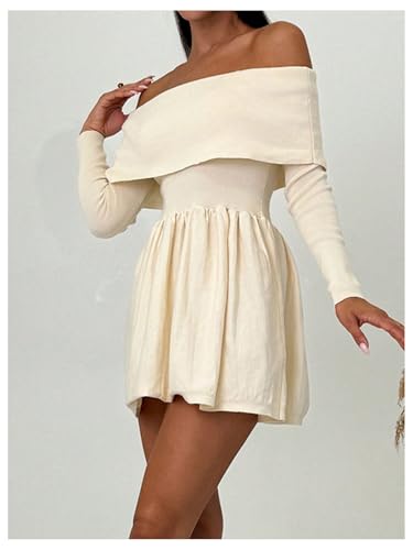 SOLY HUX Women's Off The Shoulder Sweater Dress Long Sleeve A Line Ruffle Hem Knit Mini Dresses 6