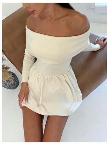 SOLY HUX Women's Off The Shoulder Sweater Dress Long Sleeve A Line Ruffle Hem Knit Mini Dresses 1