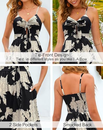 Kranda Women 2025 Summer Fall Floral Maxi Dress High Waist Tie Front Spaghetti Strap Ruffle Long Beach Sundress with Pockets 1