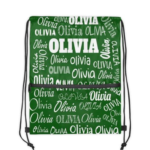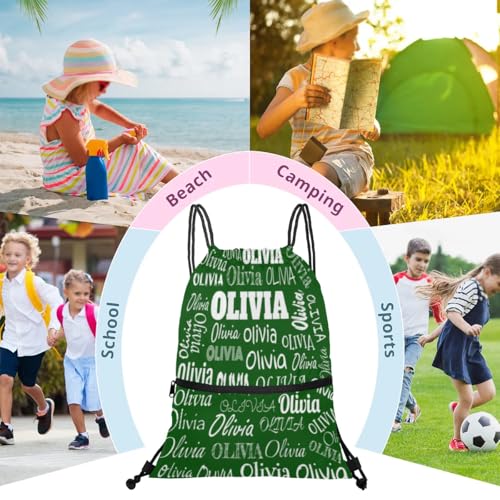 Custom Drawstring Bag with Name, Personalized Strap Pack Casual String Bag Backpack, Solid Dark Green