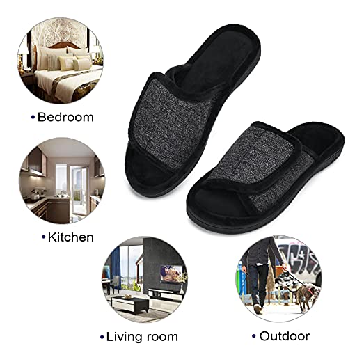DL Adjustable Men's Memory Foam Slippers, Comfy Indoor Outdoor, Breathable Slide Bedroom Slippers Size 7-14 4
