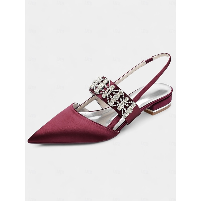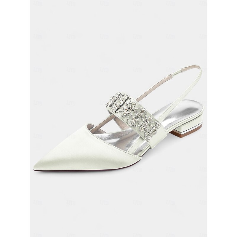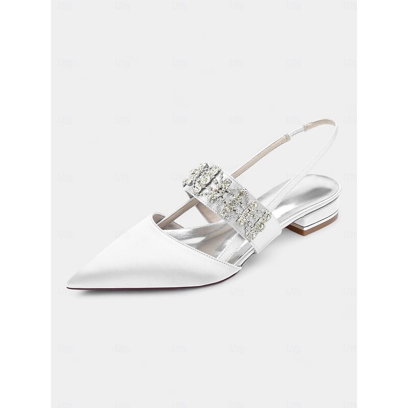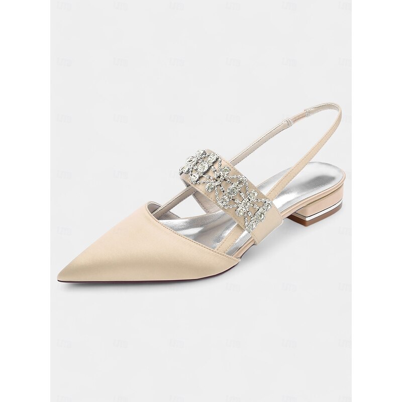 More information about Women's Satin Slingback Flats with Rhinestone Embellished Straps – Elegant Pointed-Toe Low-Heel Shoes for Formal Events