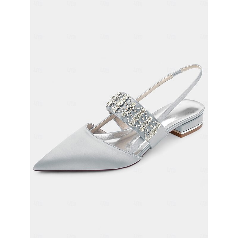 Women's Satin Slingback Flats with Rhinestone Embellished Straps – Elegant Pointed-Toe Low-Heel Shoes for Formal Events 24