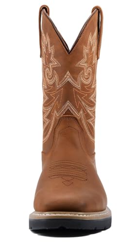 SUREWAY Men's Western Cowboy Boots-Soft Toe,Waterproof Square Toe Work Boots for Men,Comfortable & Durable,Oil/Slip Resistant,Thicker Leather,Rubber Sole,Work Shoes With Embroidered 5