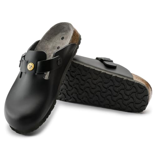 HOT ! Birkenstock Women's Open-Back Boston Antistatic Shoe/Natural Leather Black Size Normal Footbed, 39 EU