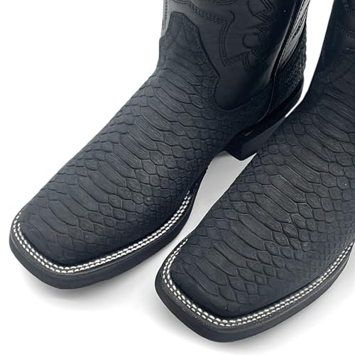• DESIGN: Men’s Leather Western Boot |Embossed Python Print Design | Mid-Calf | Square Toe