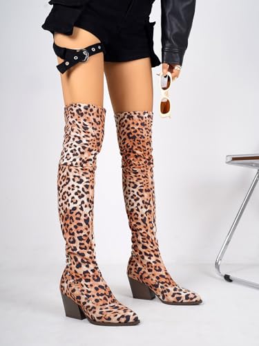 Over-the-Knee Leopard Print Boots, Pointed Toe 6