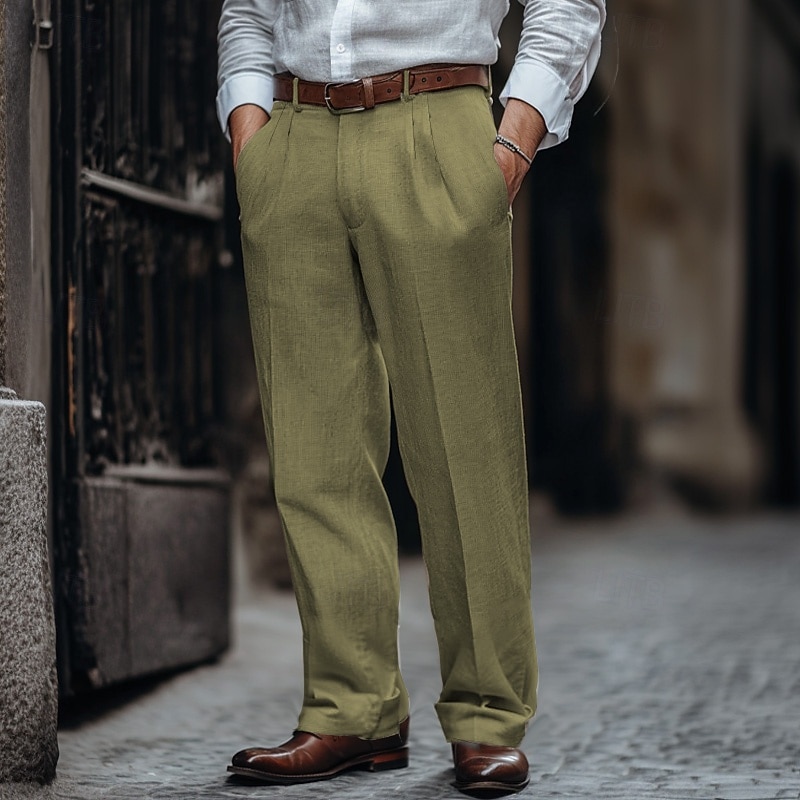 $28.99 - Men's Linen Pants Trousers Summer Pants Pleated Pants Dress Slacks Front Pocket Straight Leg Plain Comfort Breathable Business Casual Daily Fashion Basic Black White 2025. Shop for cheap Business online? Buy at lightinthebox.com on sale today!