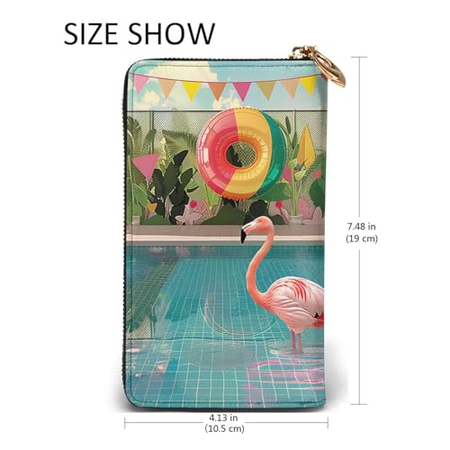 More information about Women's Leather Wallet - Flamingo and swimming pool Prints Coin Purse Travel Card Holder Zipper Purse Cell Phone Handbag
