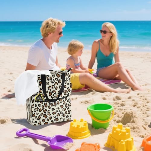 Leopard Print Book Tote Bag,Large Capacity Handbag with Zipper Perfect for School,Travel,Shopping 4