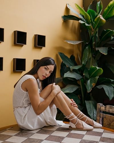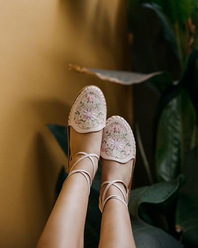 Mexico en la Piel Handcrafted Leather Huarache Sandals for Women - Roman Lace-Up Design, Crepe Sole, Floral Embroidery, Lightweight and Breathable, Available in Natural, Shedron, and White 7