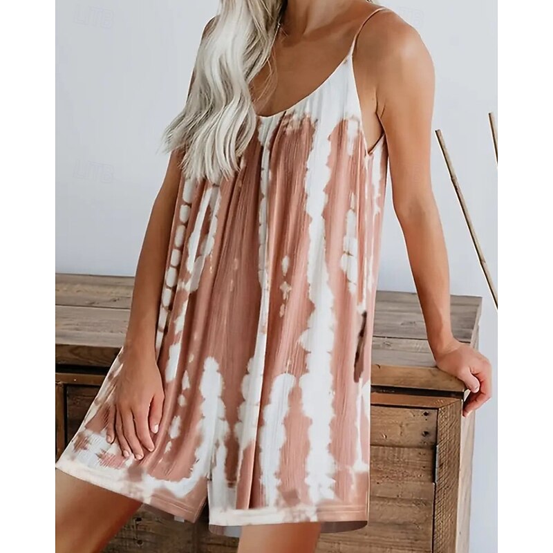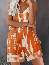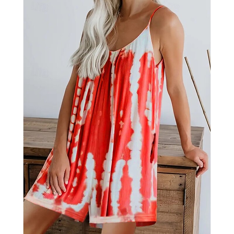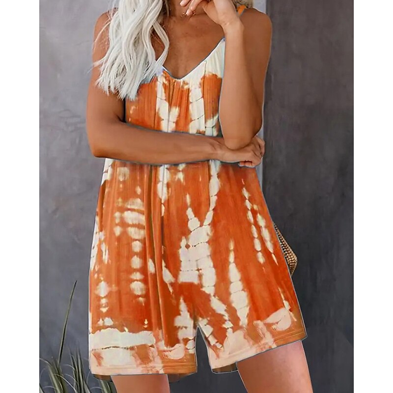 More information about Women's Normal Romper Streetwear Tie Dye Sleeveless V Neck Print Street Daily Regular Fit Light Green Pink Red Summer
