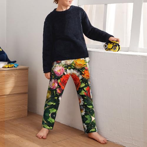 Pajama Pants Pajama Bottoms with Elastic Waistband Sleepwear Lounge Pants, Colorful Rose Flowers Sunflowers