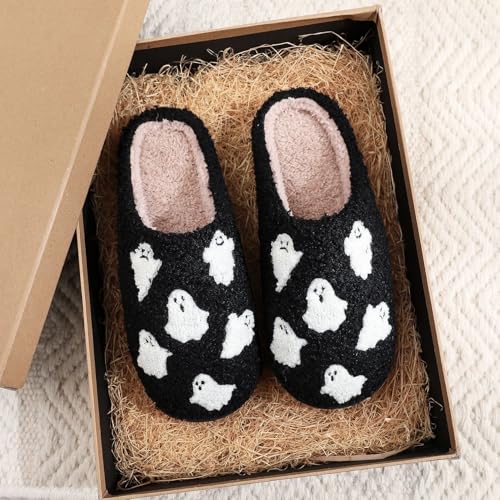 Halloween Slippers for Women and Men Holiday Indoor Bedroom Warm Slippers Winter Soft Home Non-Slip Soft Plush Slip-on House Shoes 6