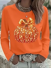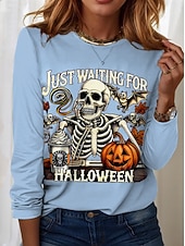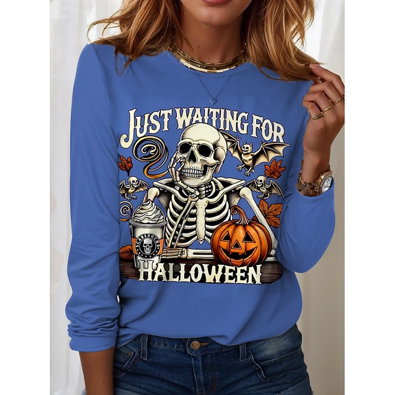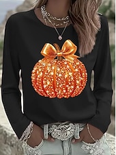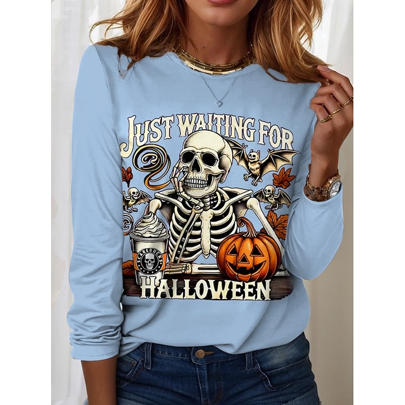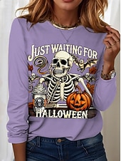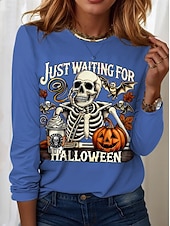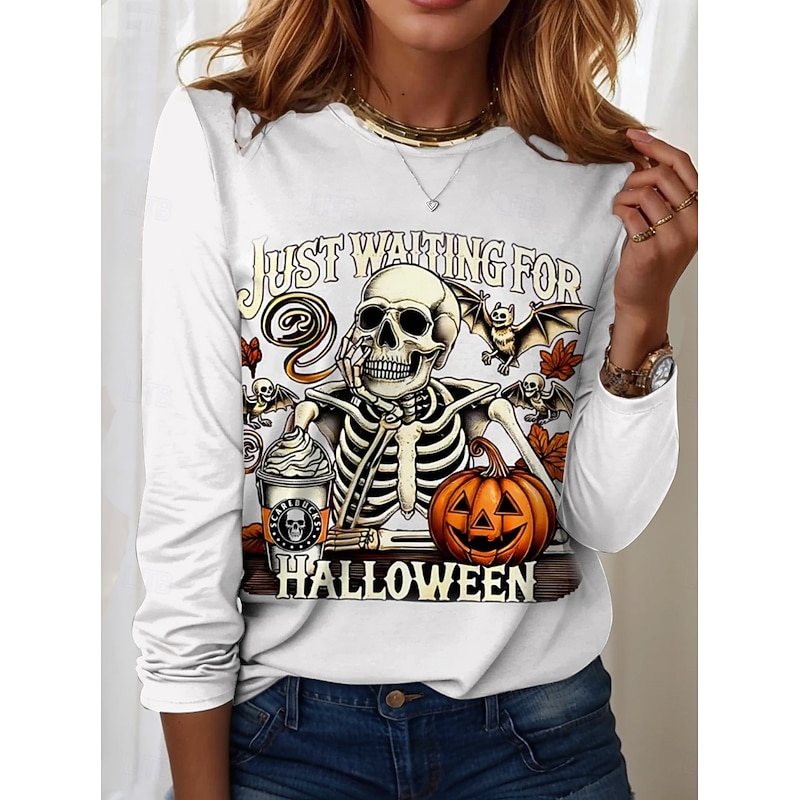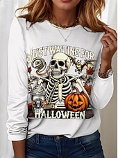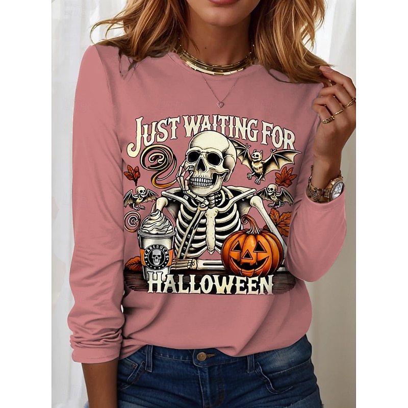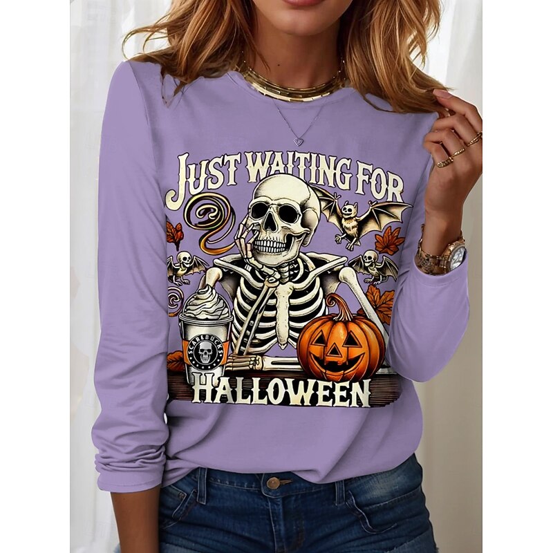 More information about Halloween Women's T shirt Pumpkin Graphic Skull Vintage Fashion Stylish Long Sleeve Crew Neck Round Neck Regular Tops Daily Weekend Print Black White Pink Blue Purple Spring Fall Winter