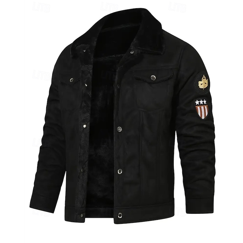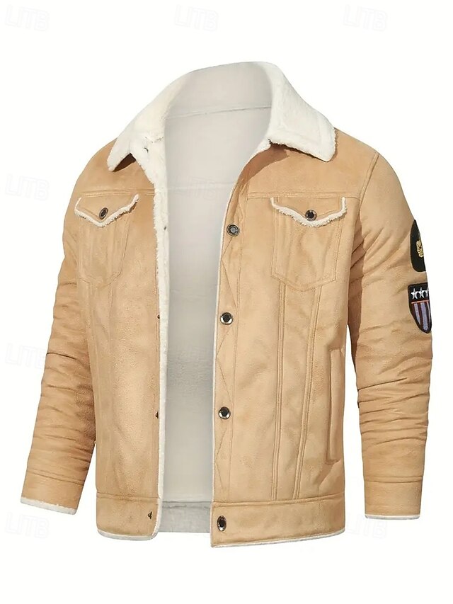 More information about Men's Winter Jacket Fleece Jacket Casual Jacket Vacation Daily Thermal Warm Pocket Fleece Fall Winter Plain Fashion Streetwear Lapel Regular Black Khaki Jacket